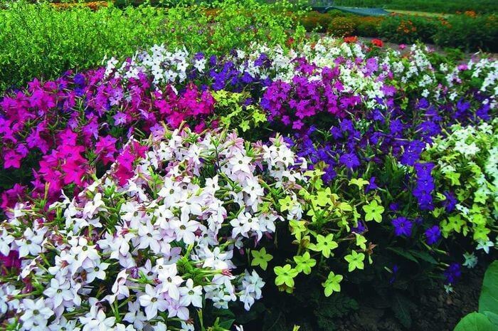 Tobakk, hvis blomster er stjerner, ser veldig vakker ut. Blomstringens diameter er ikke mer enn fem centimeter. Blomstringen har et langt blomsterrør og fem kronblader av hvitt, rosa, karmosinrød, rød, lilla, gul, burgunder.