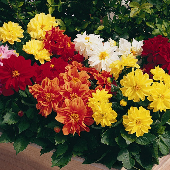 Frø plantes hovedsakelig årlig dahlia. Denne urten har en fin luftform. Stammen når 30-40 cm i høyden. Slike hybrider blomstrer voldsomt og i lang tid, egnet for dyrking i blomsterpotter.