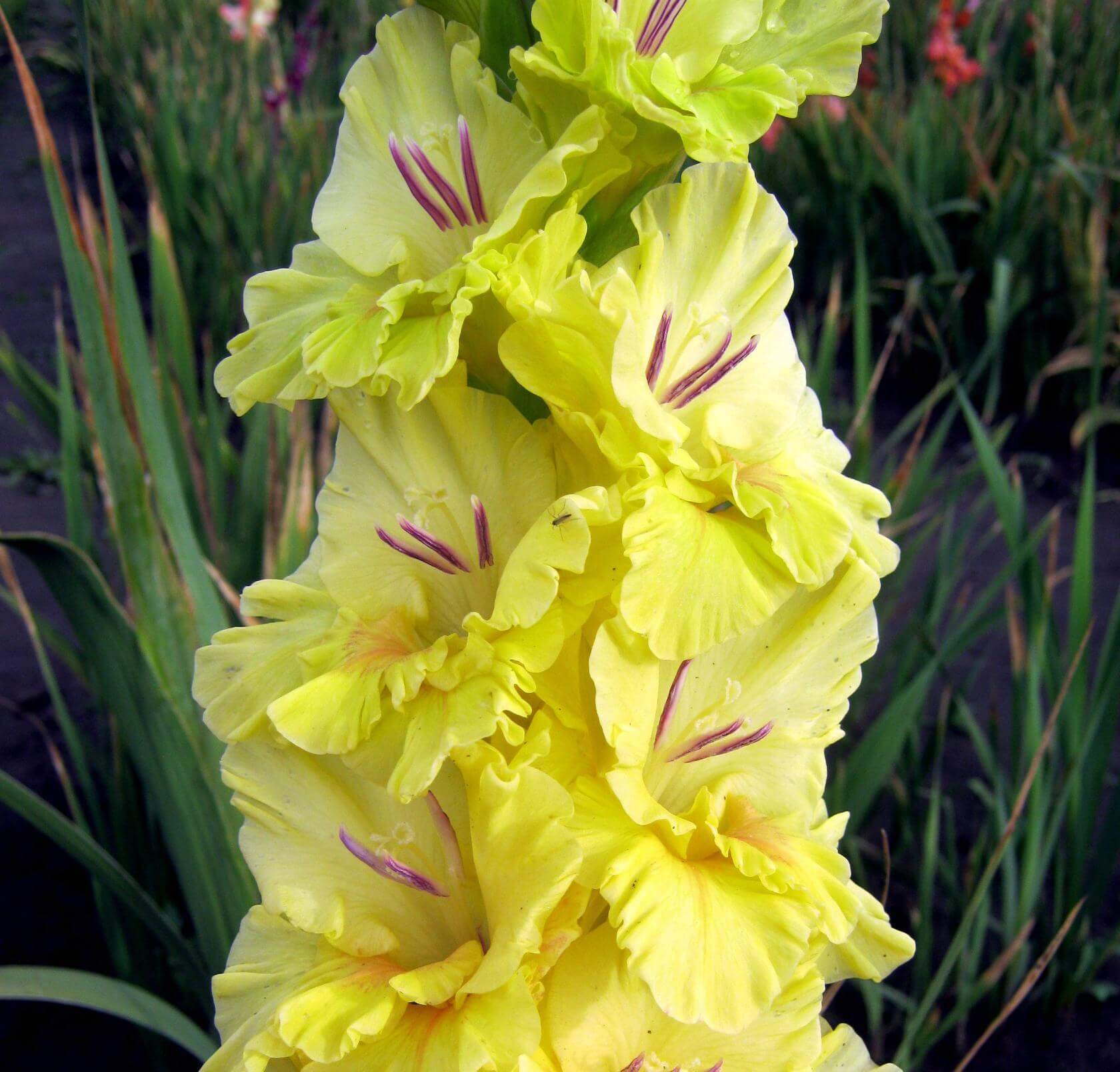 Blomstringsperioden for gladioler er omtrent 10 - 12 dager. For å få konstant blomstring er det nødvendig å plante pærene i bakken med et kort tidsintervall.