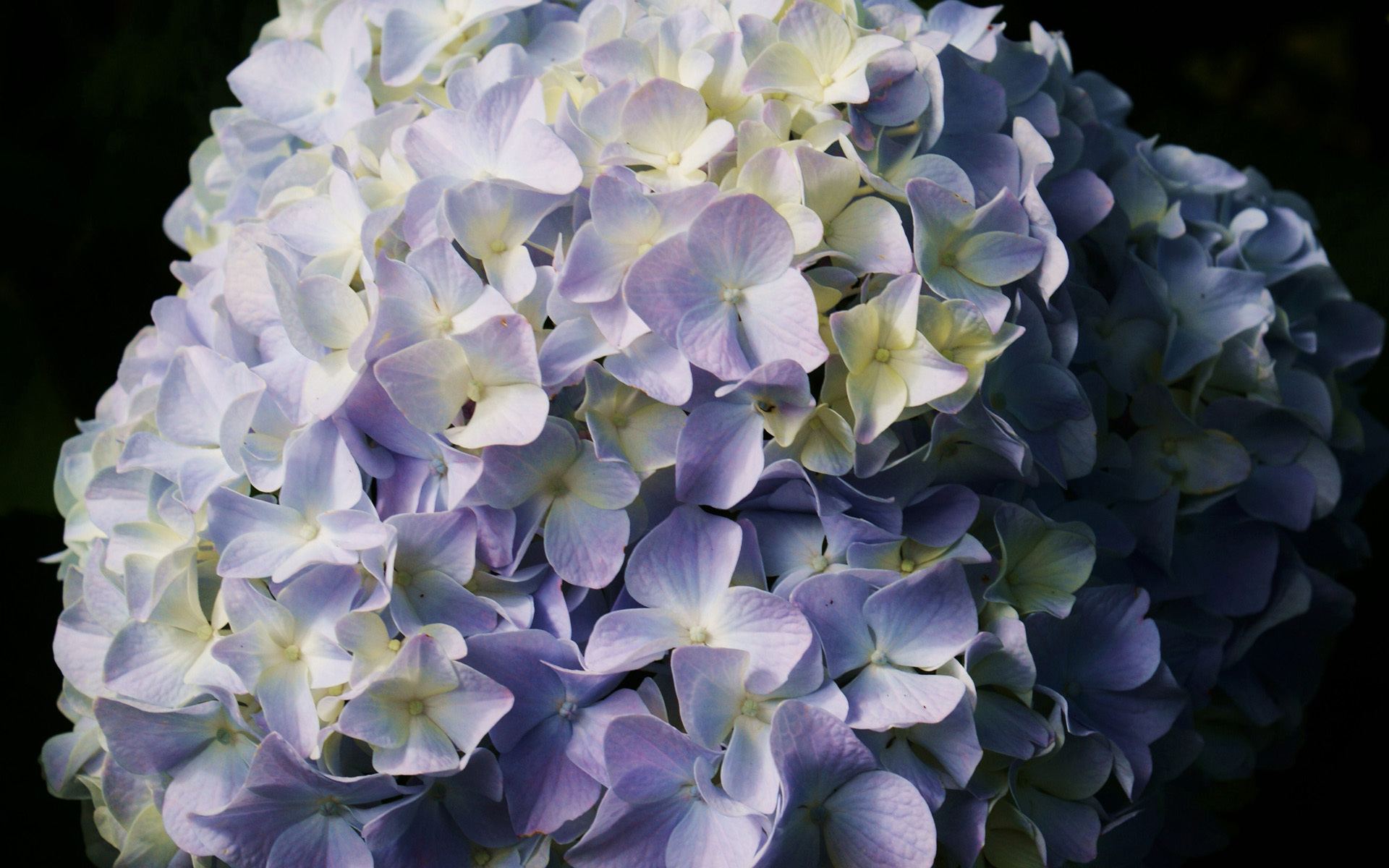 Blomsten av hortensia er overveiende sfærisk. Hver består av to typer blomster: den første er liten fruktbar, ligger i sentrum, den andre er store sterile (sterile), plassert i kanten av blomsterstanden. I noen arter er det bare fruktbare blomster.
