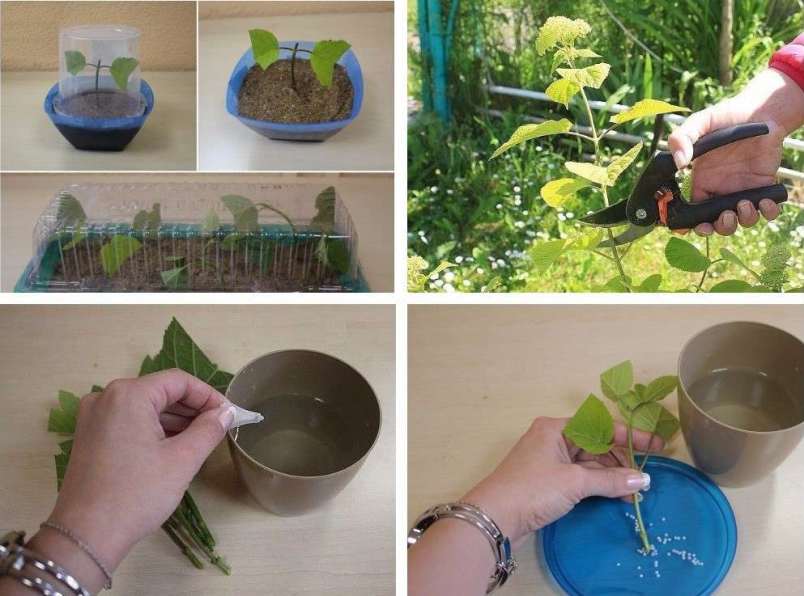 Hortensia-trelignende hortensia arborescens Sterk Annabelle reproduseres i buede lag. Stiklinger tas vanligvis på forsommeren eller tidlig på høsten fra skudd som ennå ikke har blomstret. Klippelengden er litt over 10 cm. Den blir gjødslet med et vekststimulerende middel og forankret i en beholder fylt med torv.