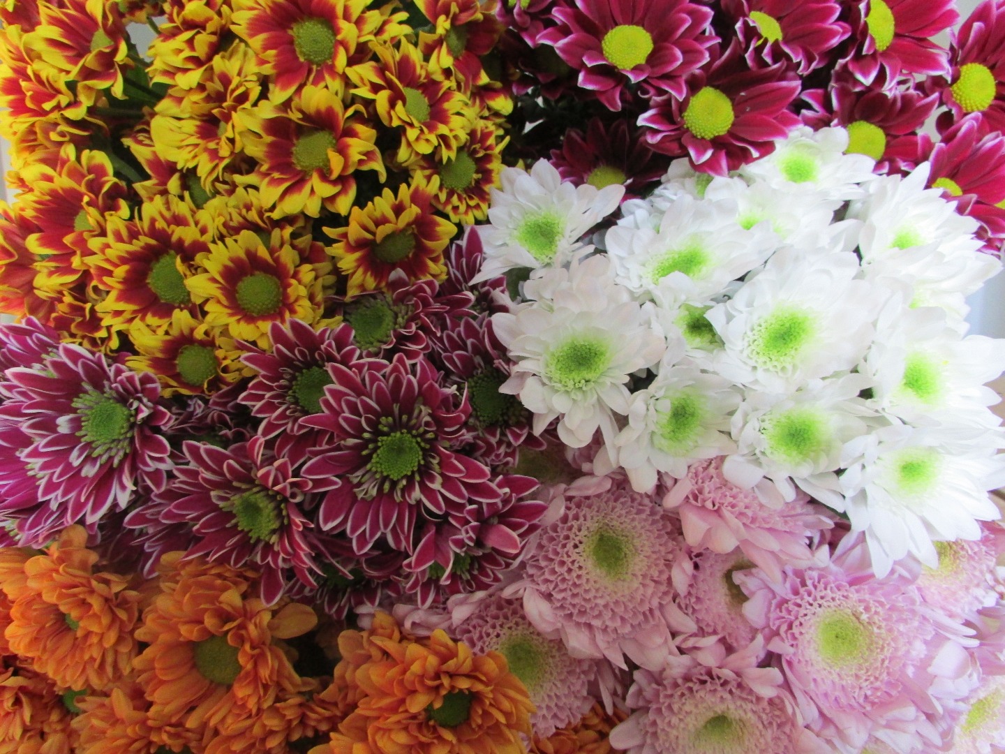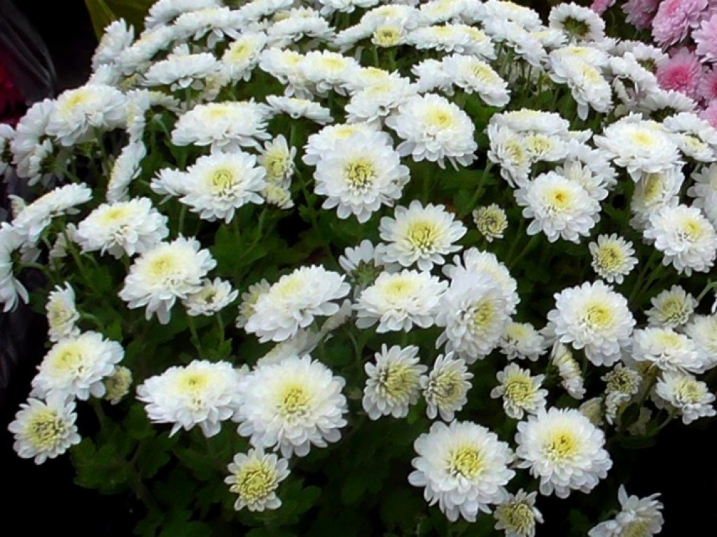 Hvit busk av krysantemum er populær blant blomsterhandlere. Det preges av en overflod av varianter og er kuttet i lang tid.