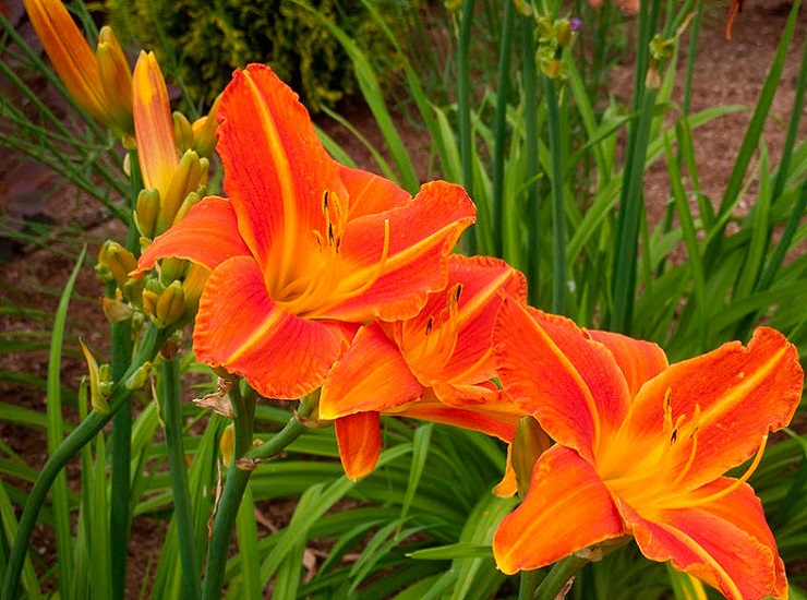 Daylily blomstrer fra slutten av juni til begynnelsen av august. Blomstringstiden avhenger av sorten. Moderne dagliliesorter antyder flere blomstringer. Etter den første bølgen skyter de piler. Voksne planter gir opptil 20-30 blomsterstander per sesong, som hver blomstrer opptil 20 blomster.