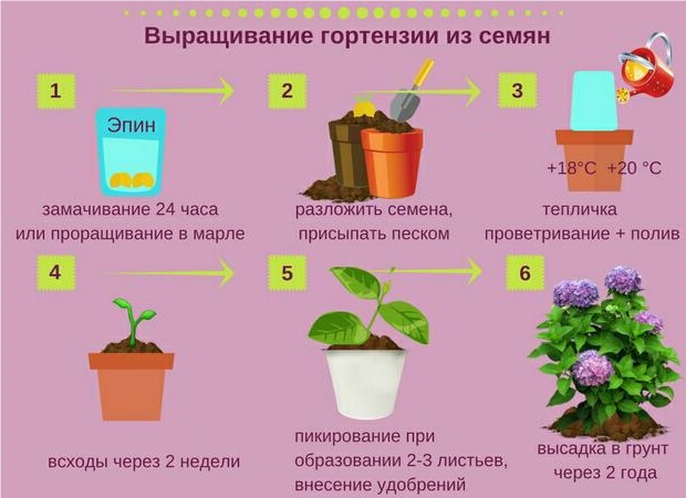 For å dyrke en hortensia fra frø, må du bestemme deg for et plantested. I drivhus med oppvarming blir plantingen gjort fra desember, hjemme - fra mars. Såing i åpen bakke gjøres i april-mai.