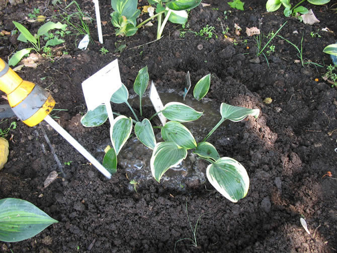 Spirene er nå klare til å overleve alene. Det er viktig å velge et godt sted for dem, hosta tolererer ikke trekk, liker delvis skygge, noen varianter, foretrekker å vokse i grupper. Jorden trenger litt sur, moderat fuktig, permeabel for fuktighet og luft. De har forberedt det siden høsten: nødvendig organisk gjødsel fordeles over sengene i en dybde på 10 cm. Om våren begynner plantingen.
