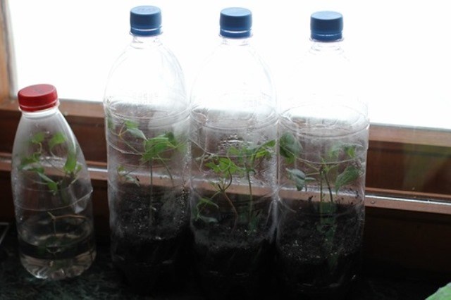 - Gå av. Dette kan gjøres i en plastkopp. Forhull er laget i den. En kutting plantes slik at internoden nedenfra er halvt dekket med jord. Sand drysses på toppen og dekkes med plastfolie. Hver dag er det nødvendig å fjerne luftfilmen og fukte jorden med en sprayflaske.