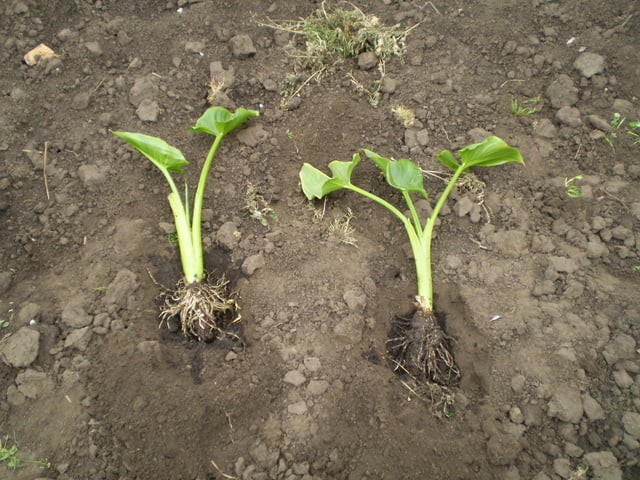 Kompleks gjødsling kreves i jorden. Det skal være omtrent 35-40 g per kvadratmeter, hvoretter jorden må graves opp. Dybden på det gravde hullet skal være opptil 10 cm, mellom buskene minst 30 cm. Knollen må senkes ned i hullet og begraves, og deretter vannes godt.