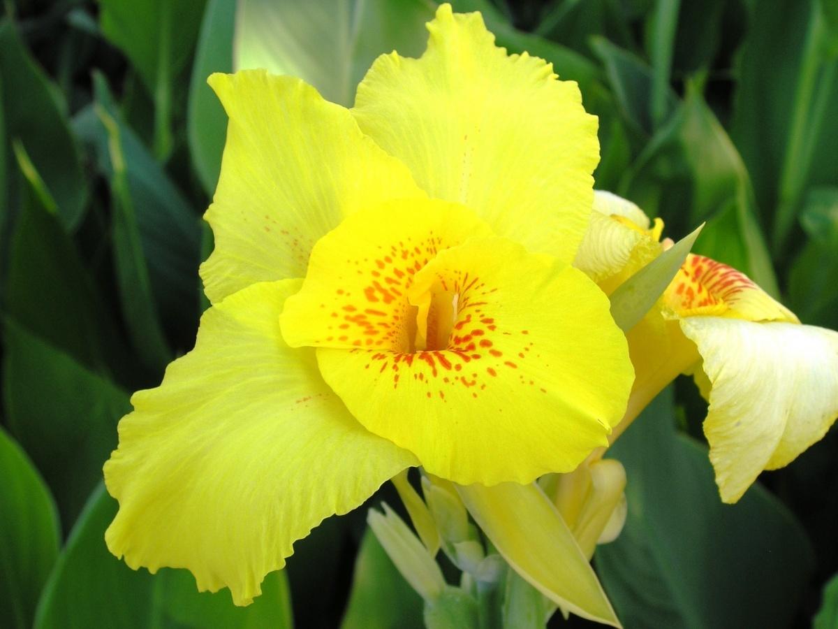 Det er vanskelig å passere canna uten å være oppmerksom på det: både de store bladene og enda mer så de lyse, spektakulære blomstene vil alltid tiltrekke øyet. Dette er ikke å si at denne skjønnheten er for upretensiøs for vekstforholdene og tar vare på den, men med litt innsats og etter visse regler er det fullt mulig å dyrke denne fargerike planten på stedet, selv om blomsterhandleren er ny på dette virksomhet. Nedenfor er en detaljert beskrivelse av hvordan en canna ser ut, planting og stell i det åpne feltet.