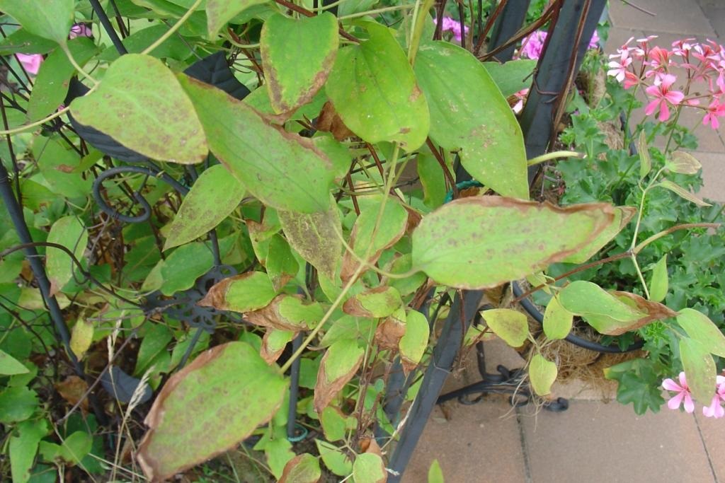 Den farligste patologien for clematis er visnet. Dette er en patologi som manifesterer seg i uttørking av grener. Hvis planten blir syk i vekstsesongen, fører dette til dens død. For å forhindre problemet er det nødvendig å sikre at røttene får riktig næring.