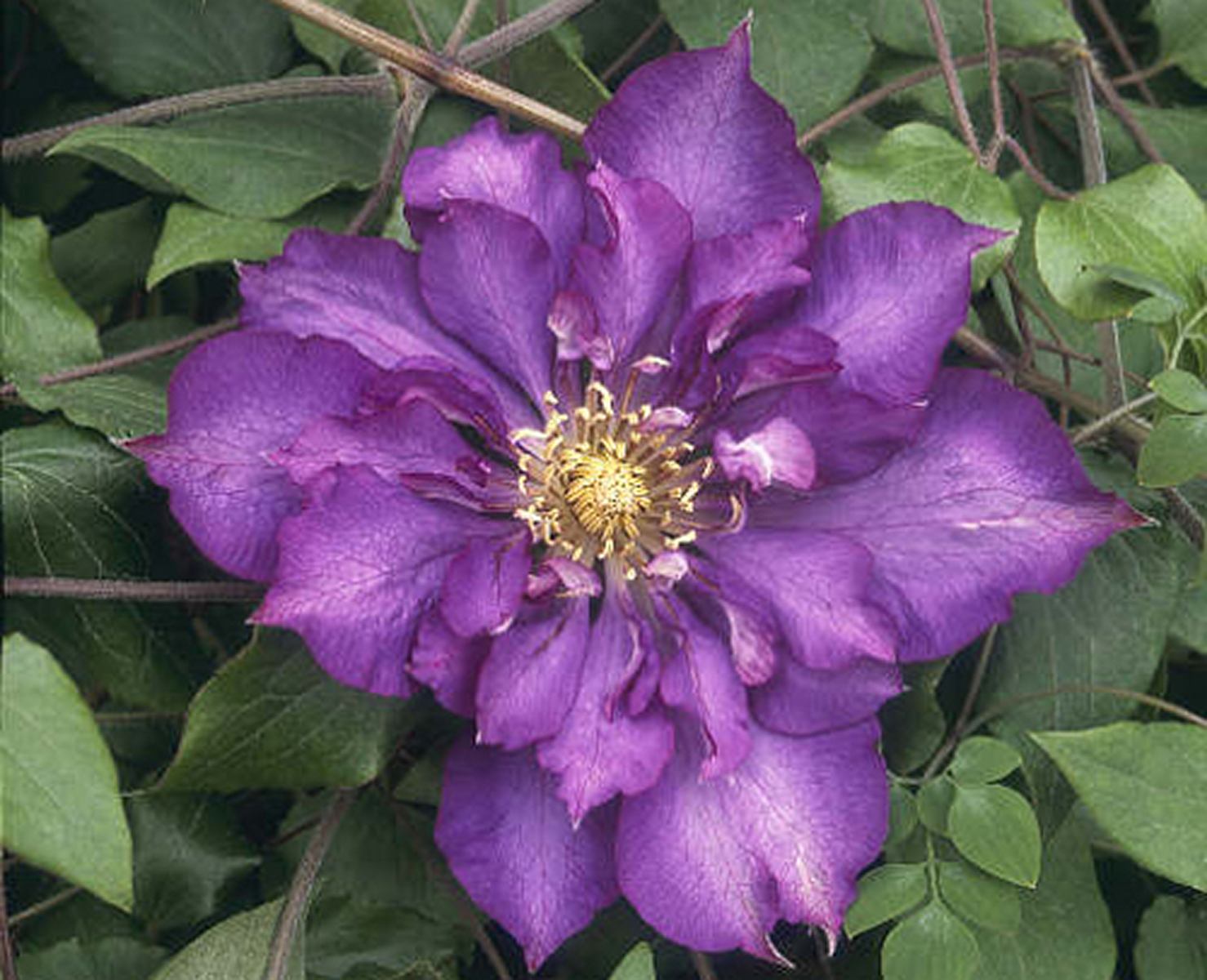 Den første blomstringen av clematis fra denne gruppen skjer i juni-juli, den andre - i august. Lilla blomster opp til 16 cm i diameter, om høsten i midten av kronbladene er det en stripe rødbrun farge. Lavt voksende sort, ca 2 m i høyden.