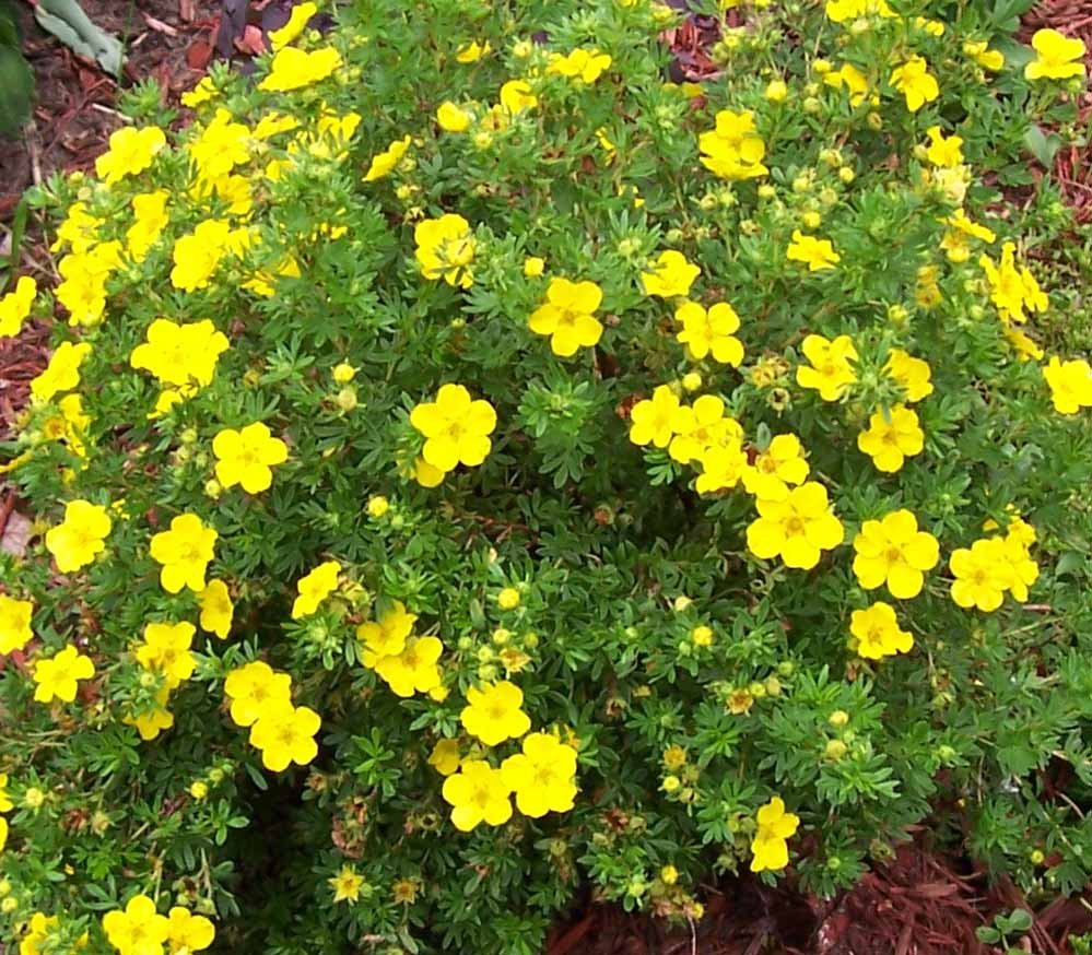 Sorten som oftest finnes i naturen er gul cinquefoil, som er en busk som varierer mye i høyden - fra 10 til 150 cm. Grenene kan ha et vertikalt eller nesten horisontalt vekstmønster. Barken på stammen og gamle grener eksfolierer, den er brungrå eller rødbrun, unge grener er dekket med hår i form av en haug. Blader opptil 3 cm lange kan være lyse eller mørkegrønne, de er fleecy-hårete og samlet i form av komplekse fjær på 3-5 stk.