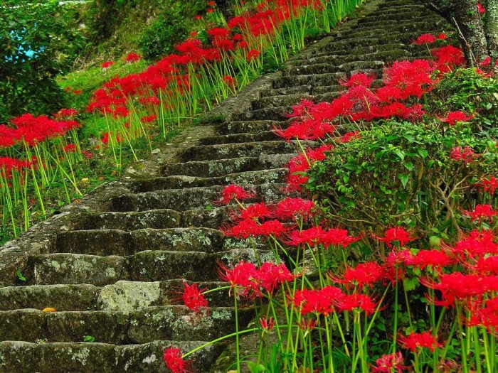 Den sinte Gud sendte en forbannelse over Saga og Manju. Fra det øyeblikket kunne løvet og blomstene på planten aldri møtes igjen. Så snart lycorisblomstene begynner å blomstre, faller den grønne massen av. På tidspunktet for dannelsen av nye blader visner blomstene. Det antas at etter at de hadde møtt i helvete, sverget de elskende på hverandre å møtes på reinkarnasjonstidspunktet og aldri skilles igjen. Akk, dette skjedde ikke. Alle i Japan kjenner denne legenden.