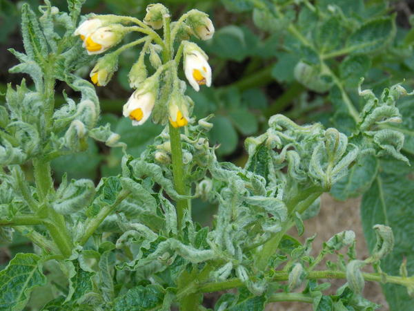 Vridde blader er hovedtegnet på skadedyrskader på en blomst.