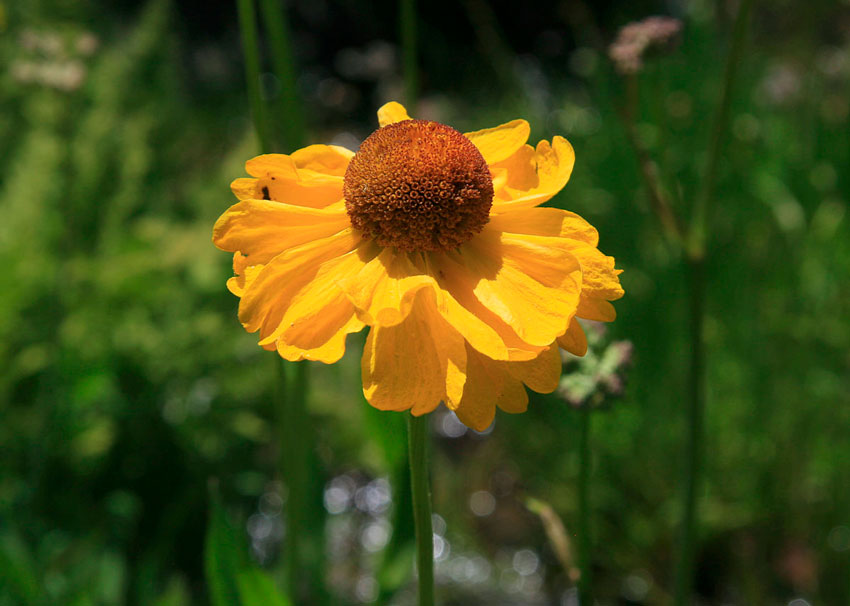 Hvis du ikke beskjærer, kan blomsten vokse og bli til en busk. Planten er veldig lyselskende, dette bør tas i betraktning når du planlegger planting. Høstgelenium regnes som stamfar til hybridvarianten.