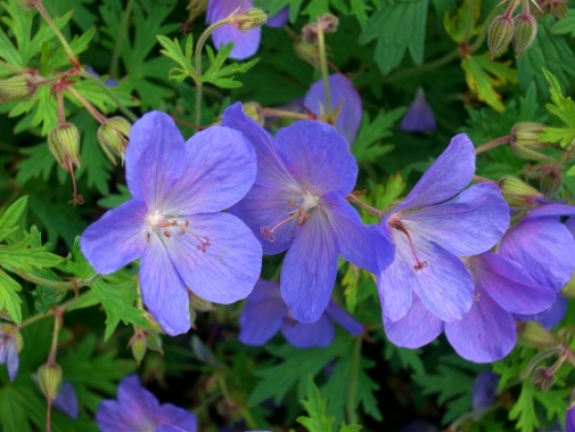 Hage geranium vokser godt på godt opplyste steder, men det vil også føles bra på steder skyggelagt av andre busker.