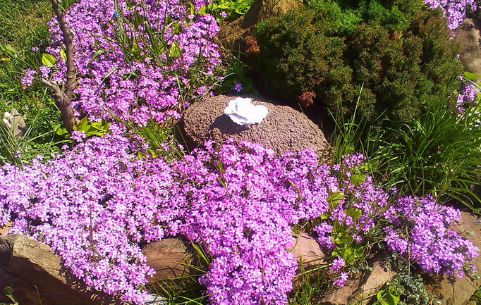 Urteaktige blomstrende planter brukes i kombinasjon med storblomstrede avlinger i forskjellige ensembler - mixborders, rabatkas, rockeries, alpine sklier, fortauskanter.