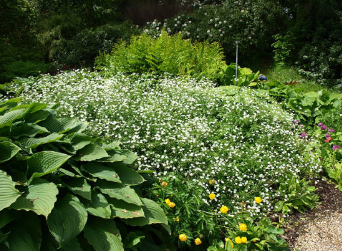 Krypende varianter av gypsophila er flerårige lyselskende krypende gress som lever på ett sted i opptil et kvart århundre.