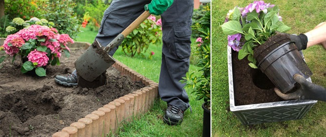 Transplantere hortensiaer i åpen bakke