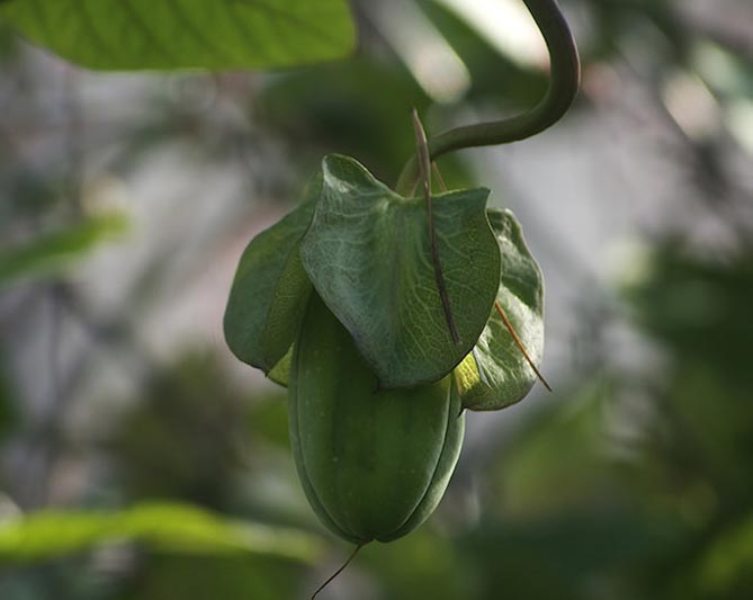 En flerårig blomst har sammensatte blommer ordnet vekselvis. Hver av dem er delt inn i tre deler. På slutten blir bladene smale og renneaktige. Det er de som hjelper kobe til å feste seg til den nærliggende støtten for å nå en høyde der solen er. I regnskog trenger du det for å overleve.
