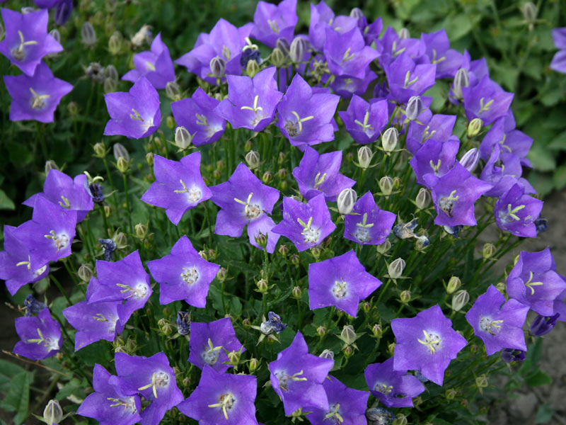- Portenschlag. Oftest valgt av produsenter, upretensiøs for vekstforholdene. Aktiv blomstring varer fra sen vår til tidlig høst. Denne varianten kan kalles den mest populære blant de ornamentale typene av campanula, selv et barn kan ta seg av det. Forresten inneholder fargelegging for barn ofte akkurat denne typen blomster. Det er lettere å tegne og dekorere ettersom bladene og blomstene har riktig form.