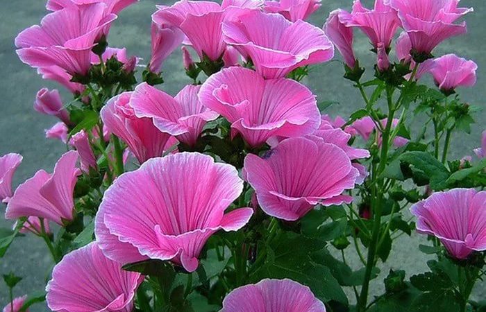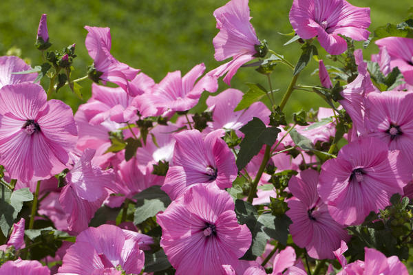 Lavaterblomster består av 4-5 kronblader, som kjennetegnes av koniske konturer.