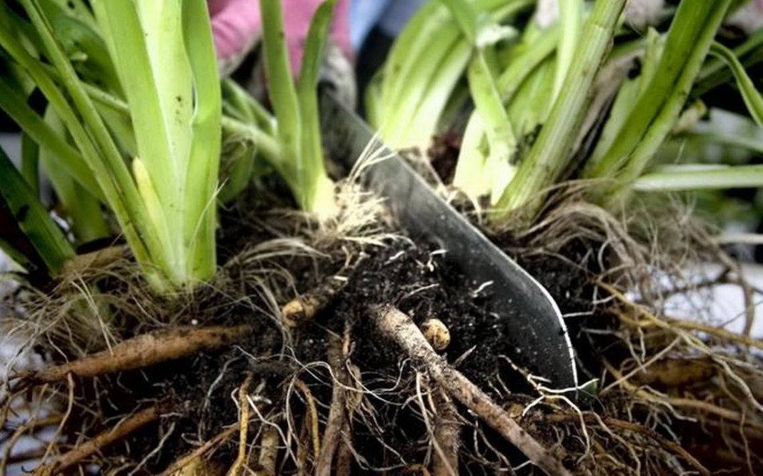 - Undersøk rotsystemet, fjern tørre, råtne røtter.