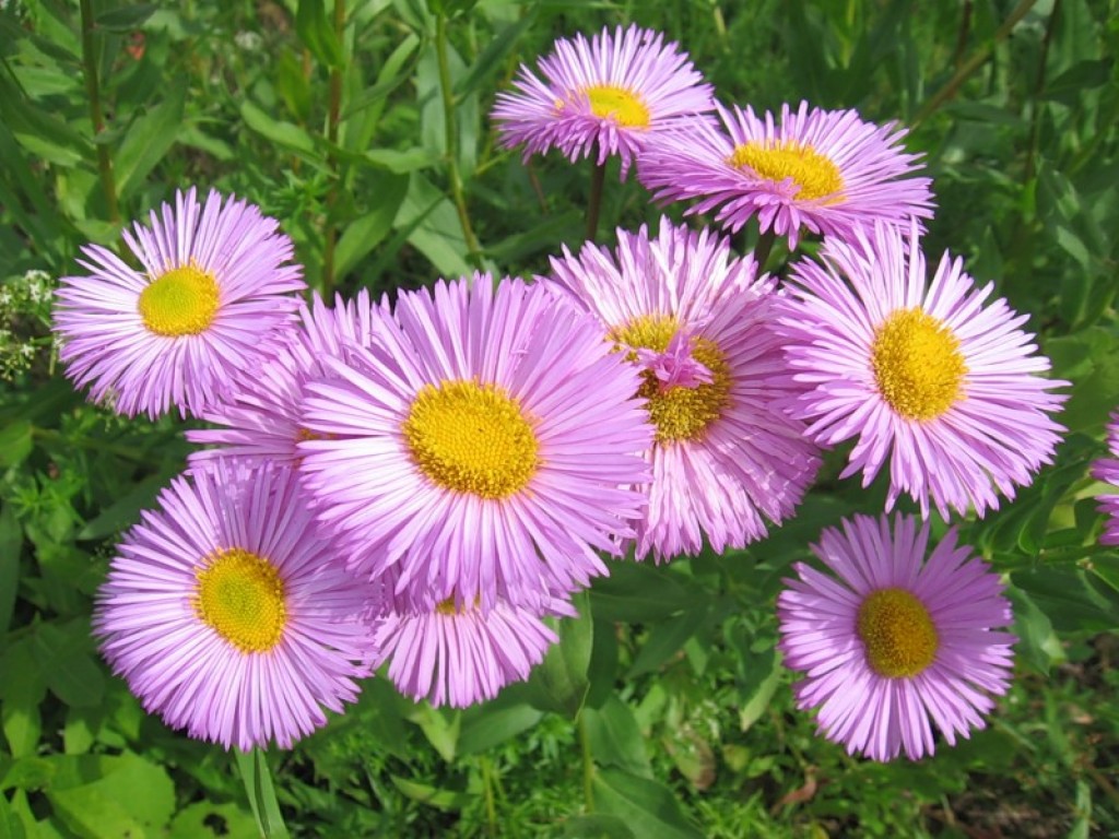 Erigeron Rose Treasure er veldig lik en aster i form, og det er ganske enkelt å dyrke den fra frø. Blomstens farge kan ha forskjellige rosa nyanser med et konstant gult senter.
