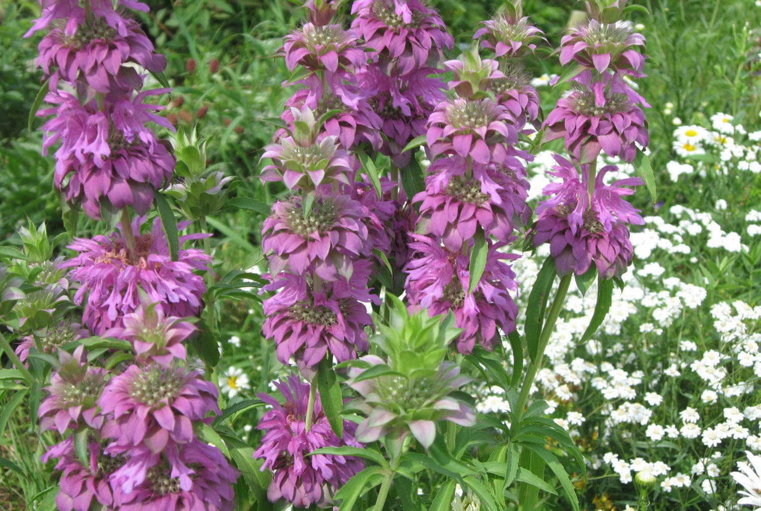 - Point monarda (hestemynte). Skiller seg i fantastiske lyse farger på bladplater, som er malt i laksefarger. Plantehøyde når 80 cm.