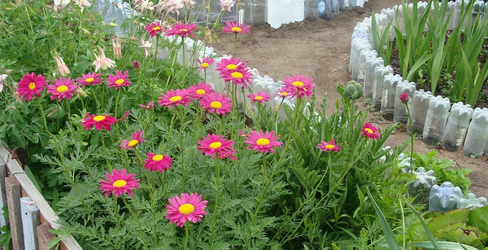 Den lyse blomsten av pyretrum kan dekorere hvilken som helst blomsterhage eller et lokalt område. Sammensetningen av forskjellige varianter, plantet langs hagestiene, ser fantastisk ut. Det er enkelt å ta vare på buskene, så selv en nybegynner kan takle det.