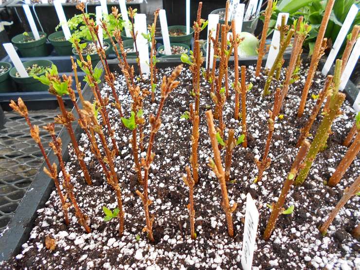 - På høsten er det nødvendig å forberede treaktige skudd som plantes i containere med sand. Etter roting plantes stiklingene om våren. Roting av stive skudd begynner i slutten av oktober.