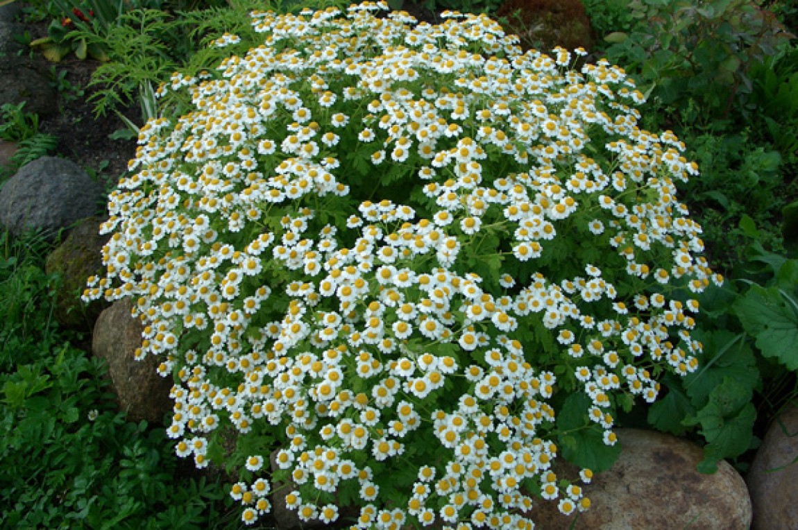 Jomfru kamille vokser i myke grønne busker helt dekket med små hvite blomster. Hun er upretensiøs i pleie, så de jentete buskene vokser raskt, som de fikk kallenavnet luke for.