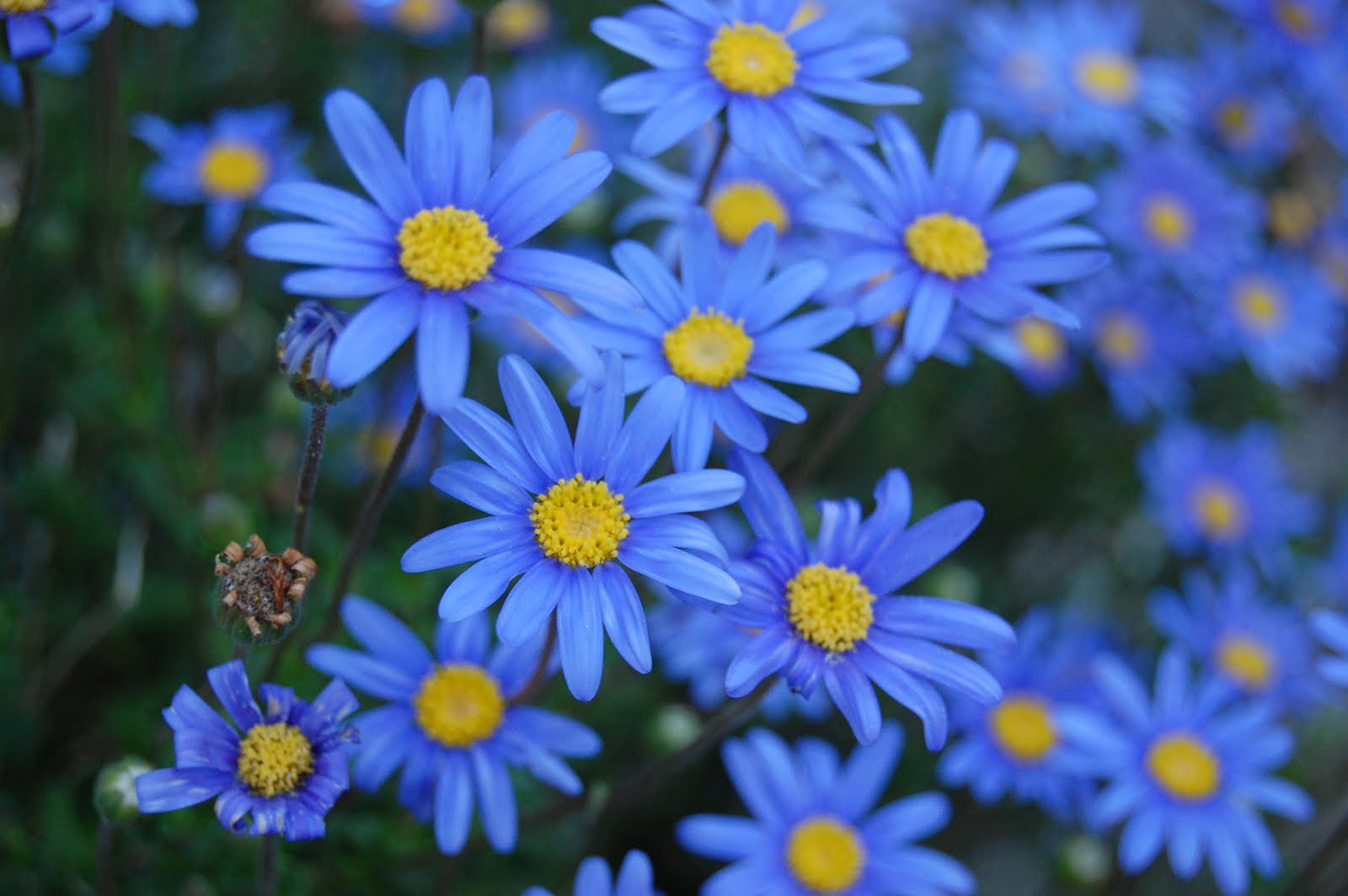 Denne lille planten opp til en halv meter i høyden har små blader, som knapt merkes under store blomsterstander med en diameter på 5 cm. Blå kamille vokser voldsomt og kontinuerlig i blomstrende busker. Blue Felicia trenger regelmessig, moderat vanning og fôring minst en gang hver tredje uke.