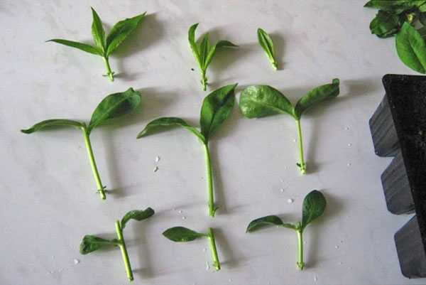 Denne avlsmetoden blir ikke praktisert av alle sommerboere, vurderer den som mer arbeidskrevende. Plantemateriale høstes i midten av juni, når planten er mest intensivt i utvikling. De tar ikke-lignifiserte skudd og kutter dem i stiklinger 5 cm lange, og prøver å ha 2-3 blader på hver.
