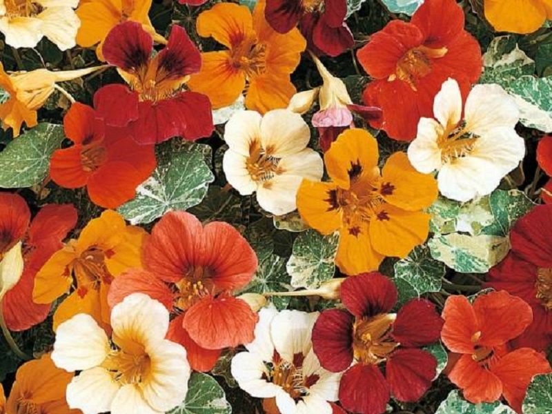 Store, i utseende som ligner på grammofoner, vekker blomster oppmerksomhet. De vokser på lange pedikler i bladakslene. Når nasturtium blomstrer, gir knoppene en intens, behagelig, delikat duft. Fargen på kronbladene kan være gul, oransje, rosa, rød.