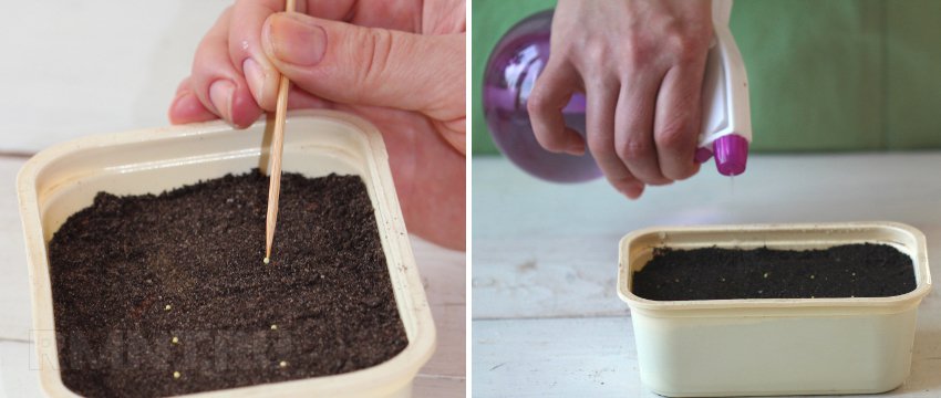 Så frøet i en beholder fylt med et fuktig underlag. Blanding av sand og torv utføres i like proporsjoner. Dryss frøene over jorden, og trykk dem lett med fingrene. Dekk beholderen med et ark glass eller polyetylen. De plasseres i et varmt rom med et temperaturregime på minst +19 ° C.