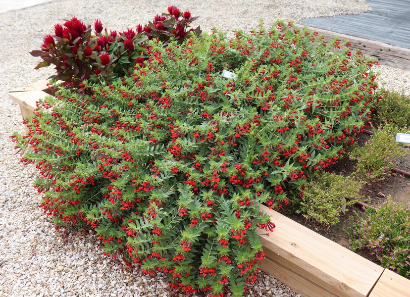 Kufeya Gel føles bra både i en gryte på vinduskarmen og i en blomsterhage i hagen. Planten vokser til en kompakt busk med knallrøde rørformede blomster. Høyden på blomsten overstiger sjelden 40 centimeter. Blomstene er relativt små, som regel, vises i store mengder på en gang og fortsetter å blomstre gjennom hele sommeren. Sorten tåler godt vind og regnvær.