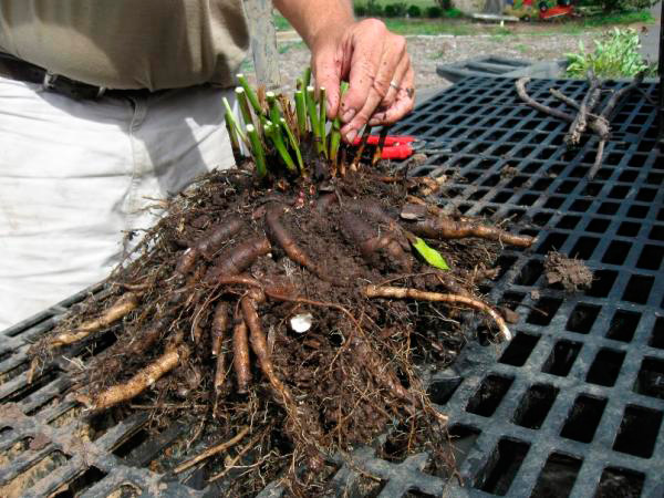 For å oppnå plantemateriale blir rotsystemet til en voksen busk forsiktig gravd ut. Røttene til planten er skjøre og går dypt i bakken, så det er ikke nødvendig å skynde seg. Det er best å bruke en hagegaffel for å trekke ut jordstammen.