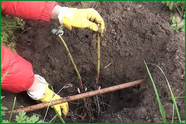 Resten av buskene beskjæres på dette tidspunktet. Stilkene blir kuttet under bakken og brent. En del av kuttet er drysset med treaske. Unge busker er dekket med et tykt lag med mulch; det er ikke nødvendig å dekke for modne planter.