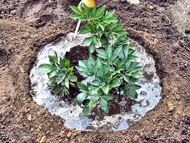 I tillegg til beskjæring og tildekking av pion, anbefales det å vanne dem rikelig før frosten begynner.