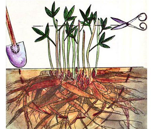 Plantemateriale (rhizome stiklinger) kjøpes i butikkene på landbrukskomplekset. Knollene selges i torvpotter eller som frøplanter i beholdere.
