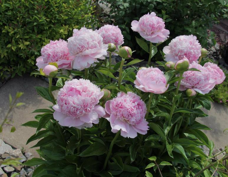 Peoner plantes minst 30 cm fra hverandre, blomsten trenger plass. Det ideelle alternativet er å opprettholde en diameter på 90-100 cm, der jorden regelmessig løsnes og lukes fra ugress. Dreneringslaget skal være 10-15 cm; utvidet leire og stor pukk kan brukes som pakning.