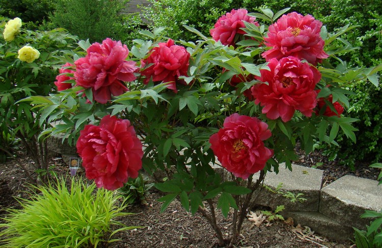 Det er viktig å velge riktig sted for å lage en blomsterhage. Peoner anses som den dominerende planten som naboer er valgt til. De ser også bra ut i enkelt landinger. Det bør tas i betraktning at mer enn 2 varianter av kultur ikke skal være til stede på nettstedet. De skal være i harmoni i form og farge.