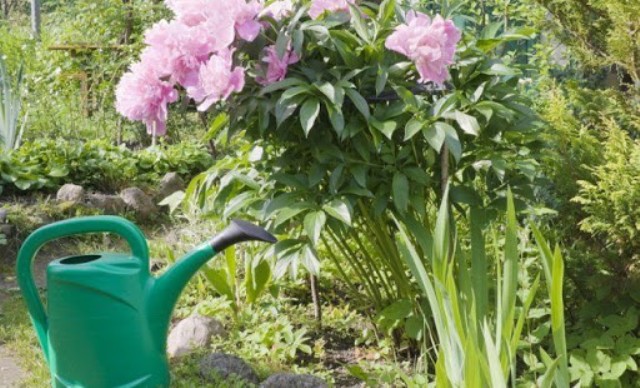 I løpet av blomstringsperioden for pioner trenger de full pleie av høy kvalitet. Det anbefales å starte det på stadium av nyredannelse. I dette tilfellet trenger planten aktiv vanning.
