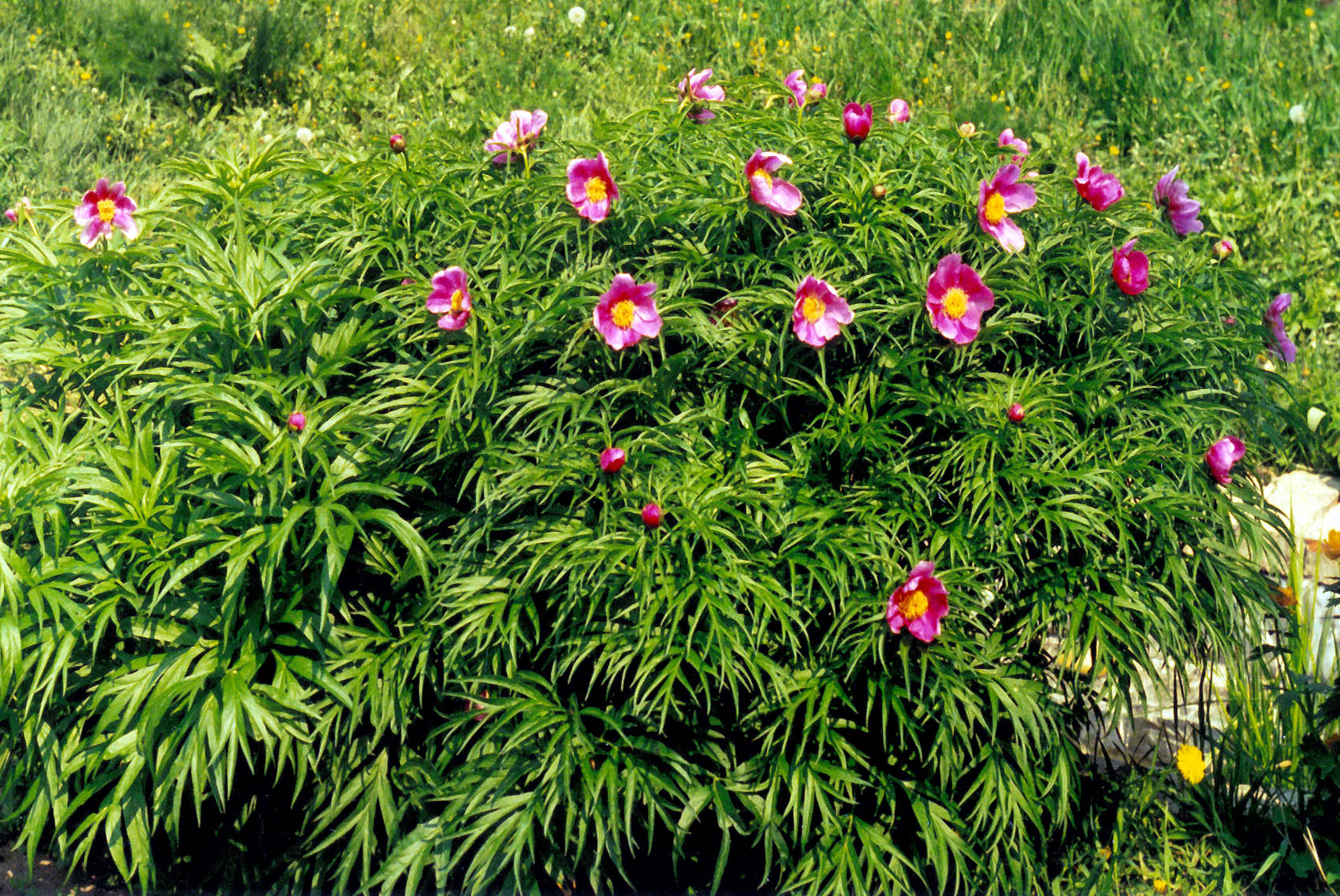 Peon er en flerårig avling som kan vokse på samme sted i lang tid - i 20 år. Den underjordiske delen danner en kjøttfull knoll, fra hvilke knoppene stammer. De når 1 m. Gjennom årene tykkes knollen av pioner, og utilsiktede røtter vises fra den. Alle pioner kan deles inn i to store grupper - urteaktige og trelignende.