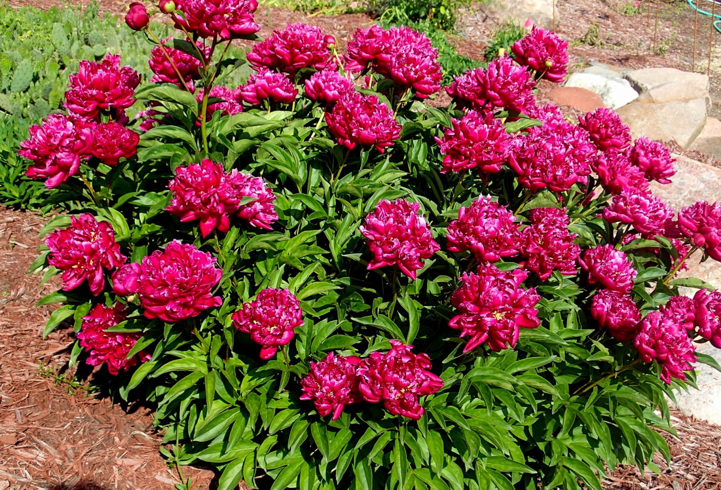 - Edulis Superba. Denne planten er preget av en viltvoksende busk som har mørkegrønt løvverk. Blomsten vokser opp til 17 cm i diameter. Den er dekorert med rosa kronblader, som kan falme litt under påvirkning av sollys. Denne kulturen er preget av en intens aroma. Busken kan vokse opp til 90 cm.