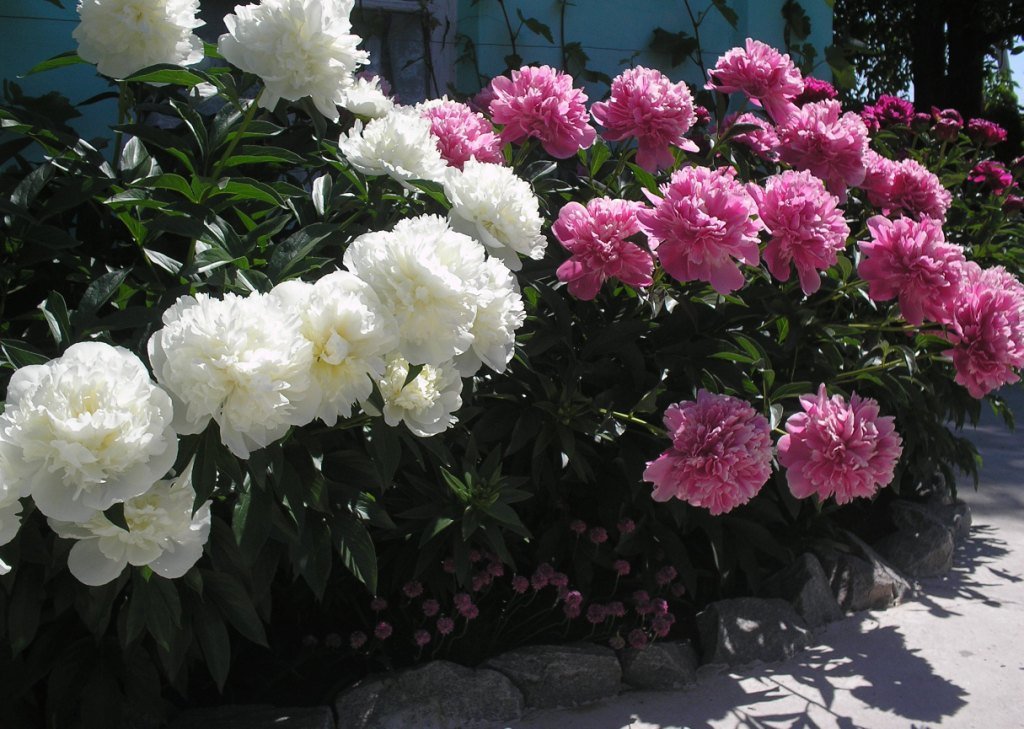 Med konstant forsiktig pleie vokser og blomstrer pioner hvert år, har et friskt utseende, lys aroma og store knopper.