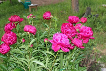 De neste årene mates pioner med organisk og mineralgjødsel fra tidlig på våren. Bedre væskemating. Fra slutten av april til midten av mai får plantene to organo-mineralforbindinger. Tilsett 20 g ammoniumnitrat, superfosfat, kaliumsulfat i en bøtte med fortynnet gjødseloppløsning. Denne mengden løsning forbrukes i tre busker. Etter fôring blir plantene vannet rikelig, jorden løsnes og mulket. Når du bare bruker mineralgjødsel, dobles dosen.
