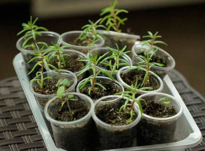 Purslane frø er veldig små. Under selvsådd forhold spruter de ut på jordoverflaten og spiser godt i lyset. Samtidig forblir de levedyktige i opptil 30 år. Derfor, når du sår i en boks eller en gryte, blir ikke frøene begravet i bakken, men bare litt drysset med et tynt lag tørr sand. Deretter sprayes de fra en sprayflaske og dekkes med gjennomsiktig plast og glass for å skape forholdene til et mini-drivhus med konstant fuktet jord.