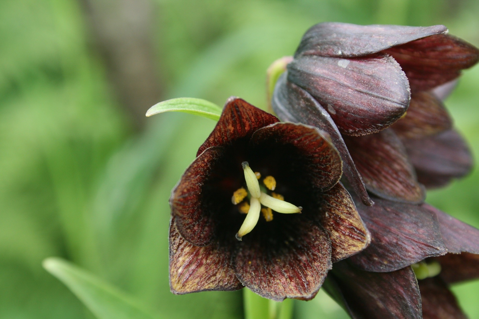 Dette er en mellomstor fritillaria, med kjøttfulle peduncles ikke mer enn 40 cm høye. Den gjennomsnittlige fruktstørrelsen er 3,5x1,8 cm. Den er i form av en sekskantet kapsel med en smal bunn. Bladene til denne arten er skarpe og lange, opptil 9 cm lange og opptil 5 mm brede. Antall blader varierer fra 11 til 19. Toppbladene er vridd for å la dem feste seg til andre planter. Dermed får roerne ekstra støtte for å holde store blomster og frukt. Blomstene er dype røde.