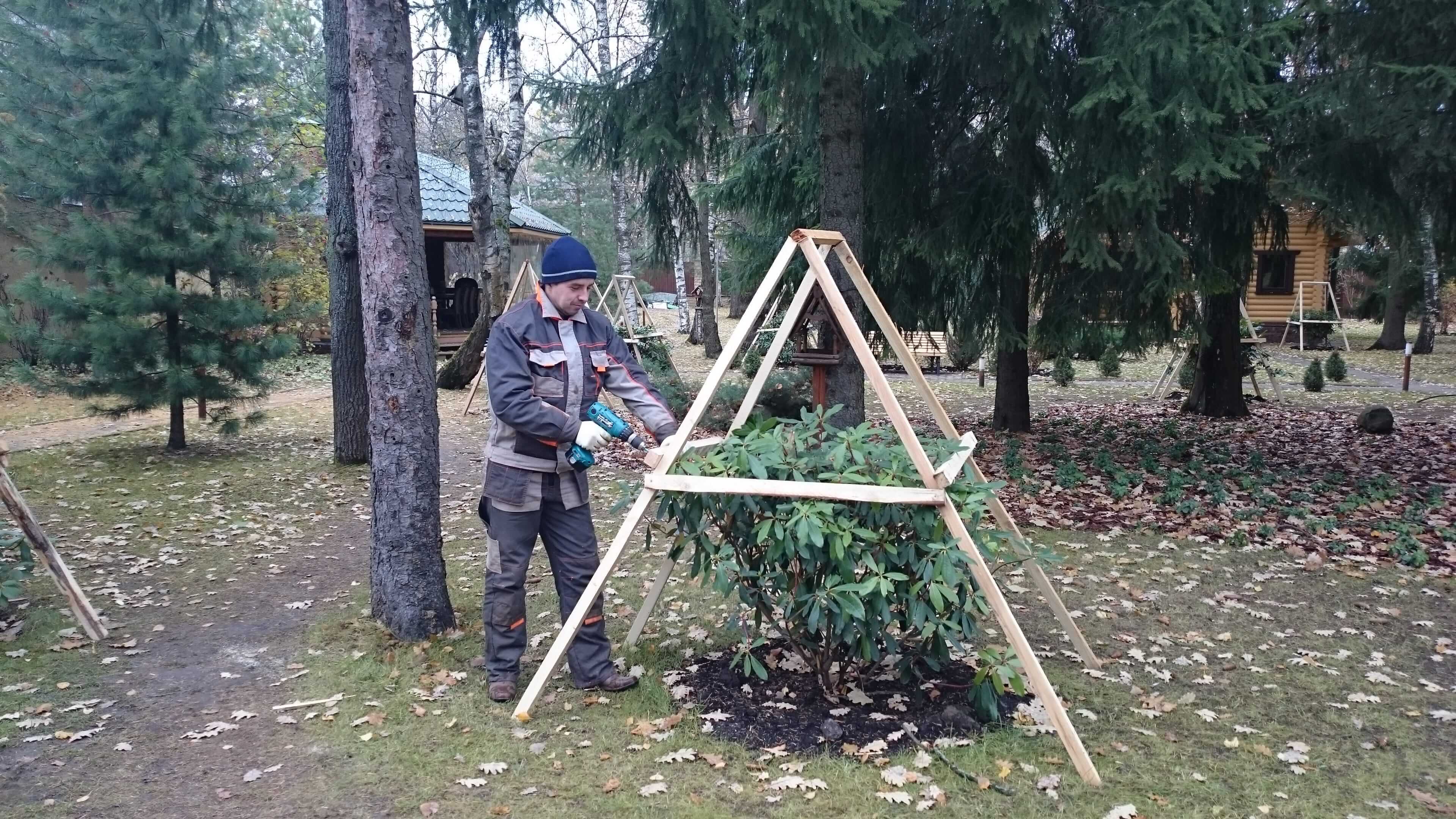 I slutten av september forberedes rammer for rododendroner, som deretter dekkes med et hvitt dekkmateriale. Planter har en lang vekstsesong på opptil 200 dager, og ikke i alle regioner klarer å kaste løvet sitt før vinteren. Dette foregår allerede under et romslig ly. Om våren våkner planten tidlig og kaster ut knoppene, rammen beskytter mot dem mot frost, under stoffet har den nok lys.